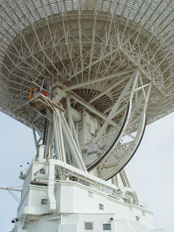 Middle of three slides of DSS-43 from top to bottom. The entire antenna stands 73 meters high and the dish is 70 meters across.
