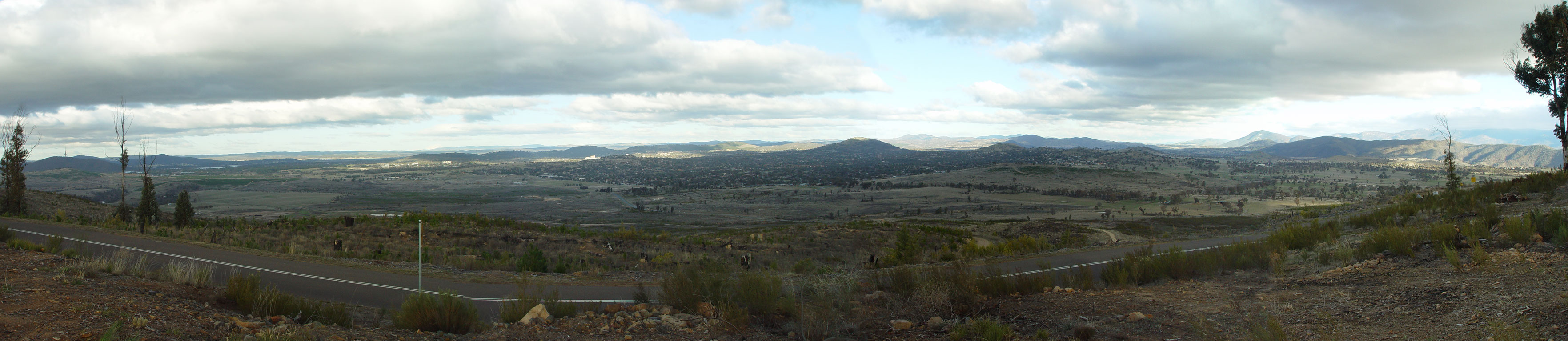 Panorama of the surrounding countryside looking east from Mt Stromlo Observatory. Scroll right to see the rest of the picture.