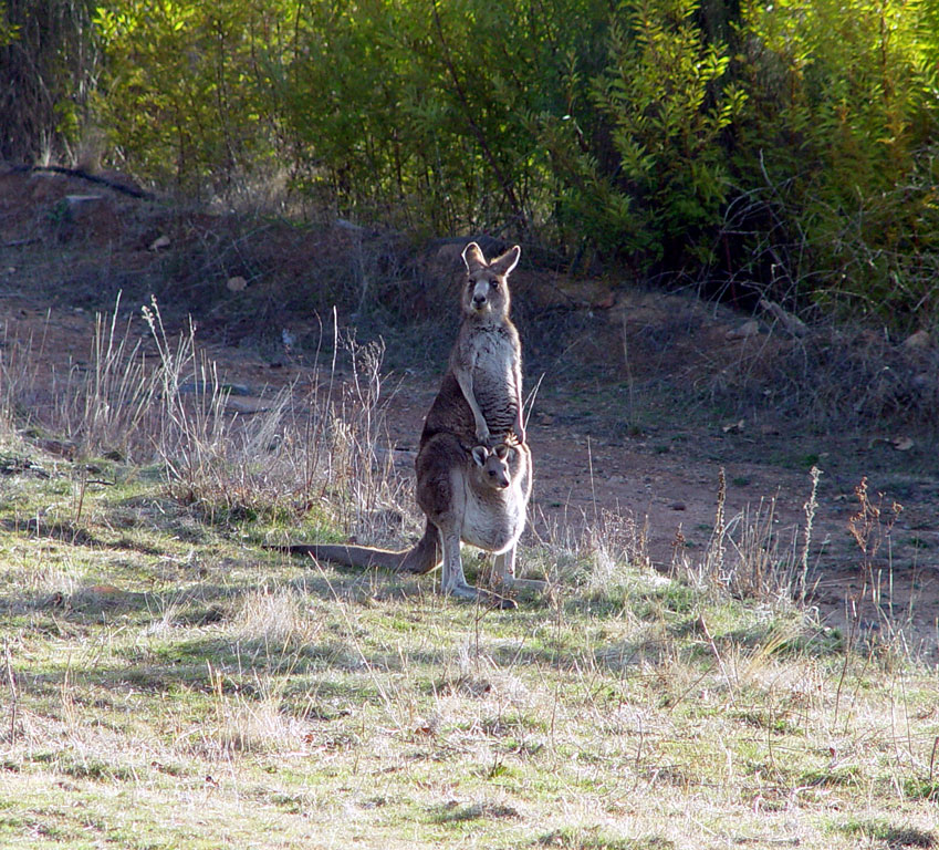 A mother kangaroo and her joey on Mt Stromlo. All of us yankee tourists probably spent more time trying to get close enough to her to get a nice picture than we did at any of the telescopes.