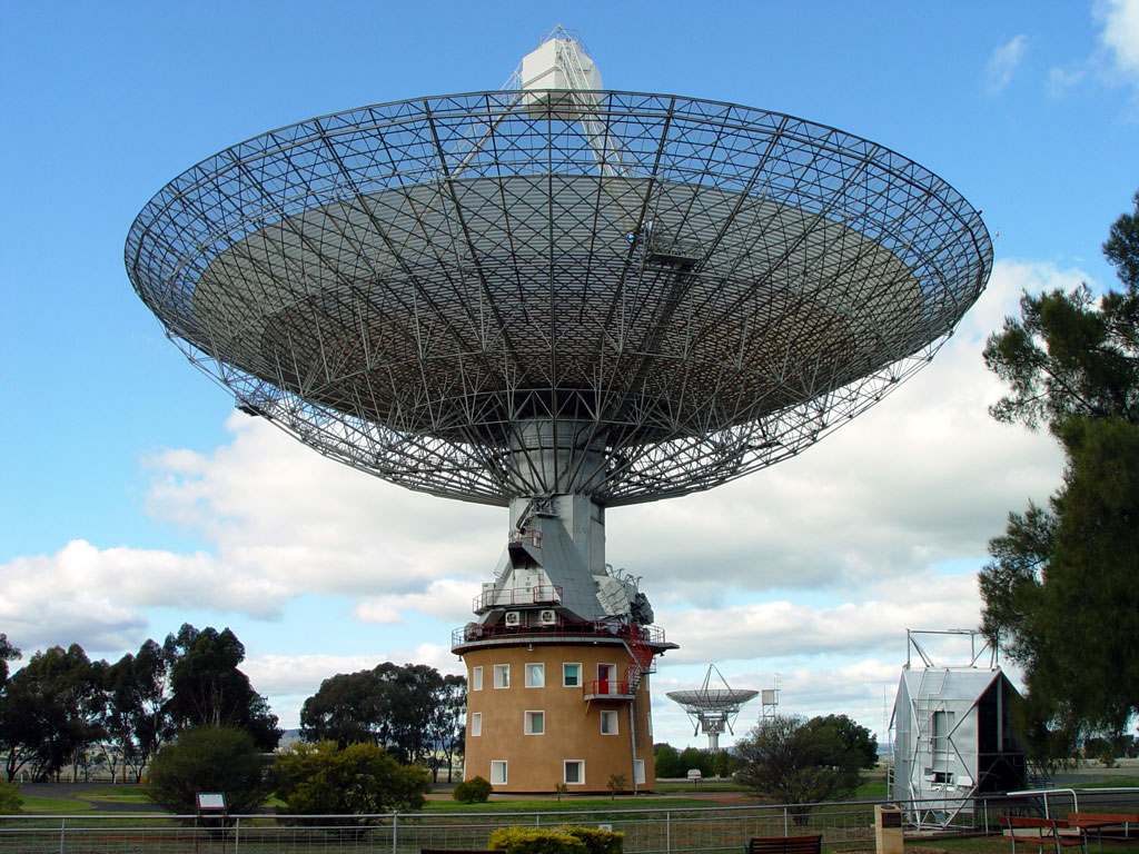 The Parkes Radio Telscope is part of the Australia Telescope National Facility. It was commissioned in 1961. The dish is 64 meters in diameter with a focal point 27 meters above the dish center. Featured in the movie "The Dish", the Parkes Radio Telescope is the one that received the best TV signals from the Apollo 11 mission in 1969. The Goldstone antenna (in California USA) received the first signal and then NASA switched to the Honeysuckle Creek station outsideo of Canberra because the Goldstone image was very dark and inverted. About nine minutes into the broadcast, NASA switched to the much better feed from Parkes. Often claimed by the Aussies to be the most beautiful radio telescope in the world, I do agree it is a pretty sight!