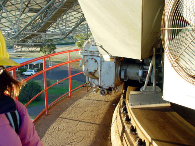 Second of three slides showing the azimuthal drive machinery of the hydrostatic bearing for the Parkes Radio Telescope. Most of the weight rides on a thin layer oil.
