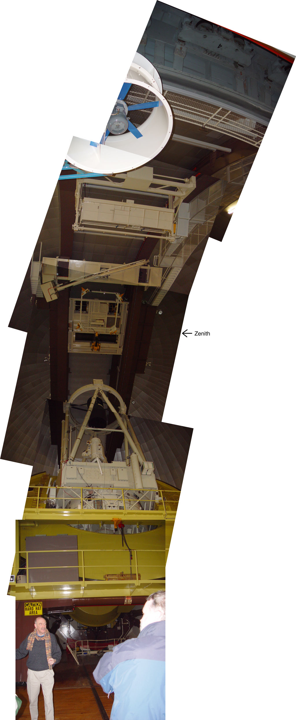 Fred Watson (at the bottom of this vertical panorama), the Astronomer in charge of the Anglo-Australian Observatory (at Siding Spring) gave us the tour of the Anglo-Australian Telescope and the associated facility. This picture shows a vertical panorama up and over to a point behind me. Unfortunately, I wasn't exactly centered so you will need to scroll a bit to the right as you scroll down to see the entire picture.
