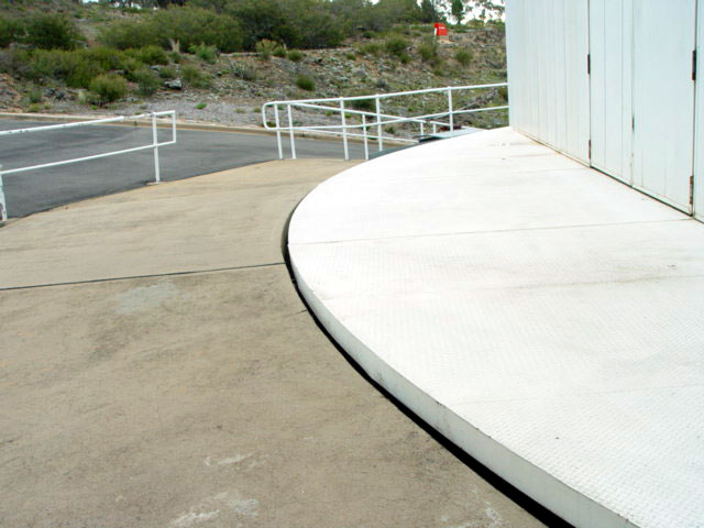 This shows the white part of the building for the Advanced Technology Telescope which rotates and sidewalk next to it which is fixed on the ground.
